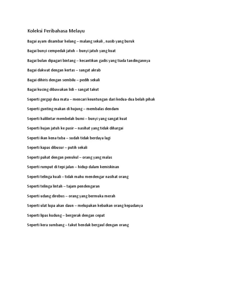 Air yang tenang jangan disangka tiada buaya · bagai cendawan tumbuh selepas hujan · bersatu teguh, bercerai roboh .